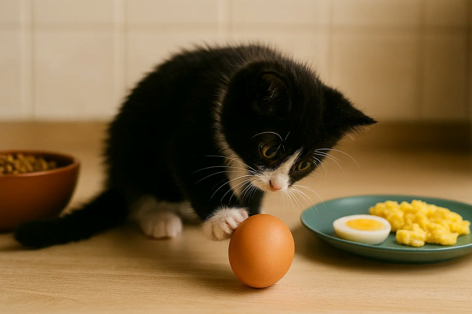 Kittens can consume cooked eggs in small quantities, but raw eggs - including raw yolks - should be avoided entirely. Their immune systems and digestive tracts are still developing, making them more vulnerable to bacterial infections and nutrient absorption issues.