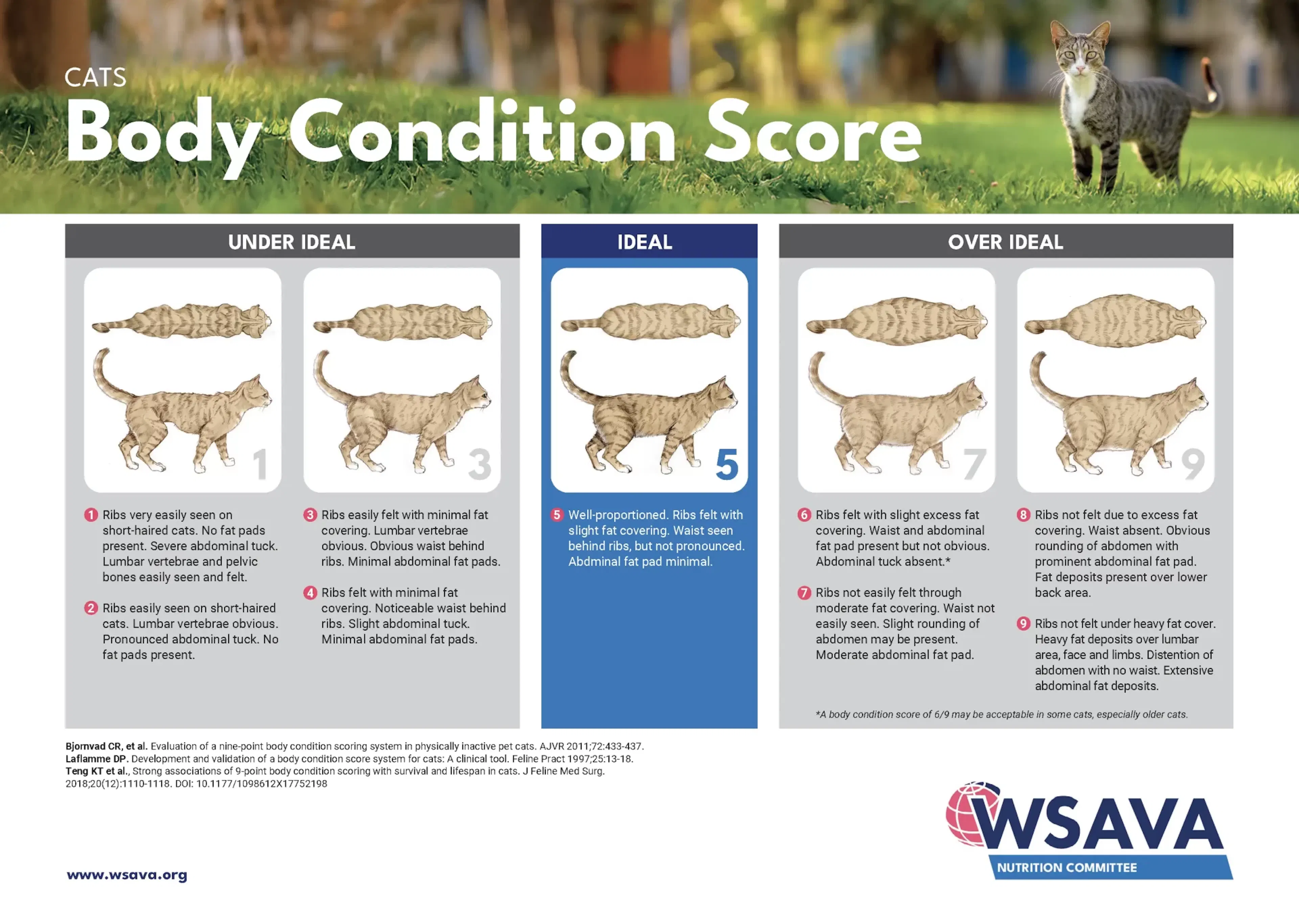 Body Condition Score chart for cats, as published by WSAVA (World Small Animal Veterinary Association)