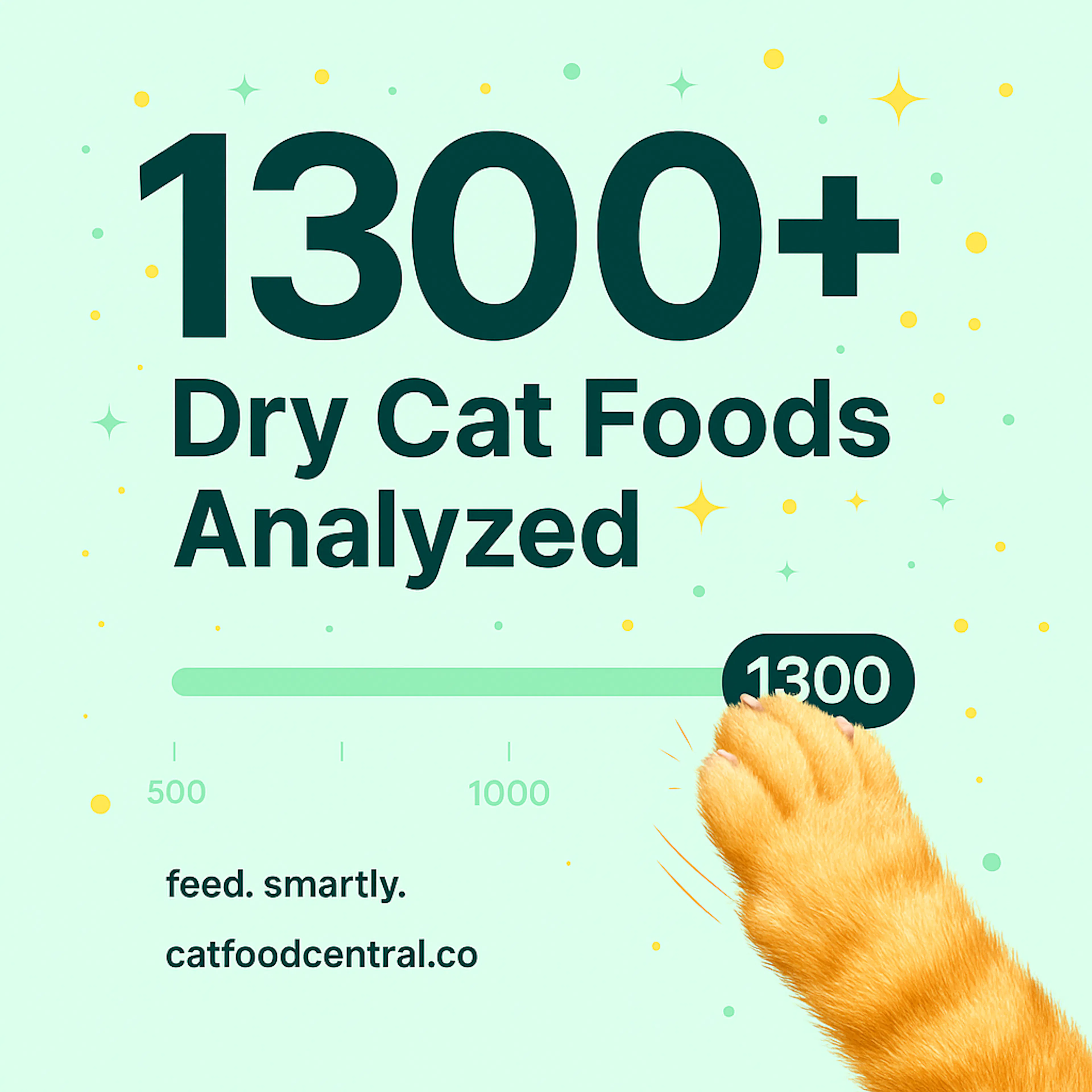 We’ve passed a significant milestone: Cat Food Central now includes analysis of 1,300+ dry cat foods, each reviewed using our consistent, data-driven scoring approach to help cat parents compare options faster and with more confidence.