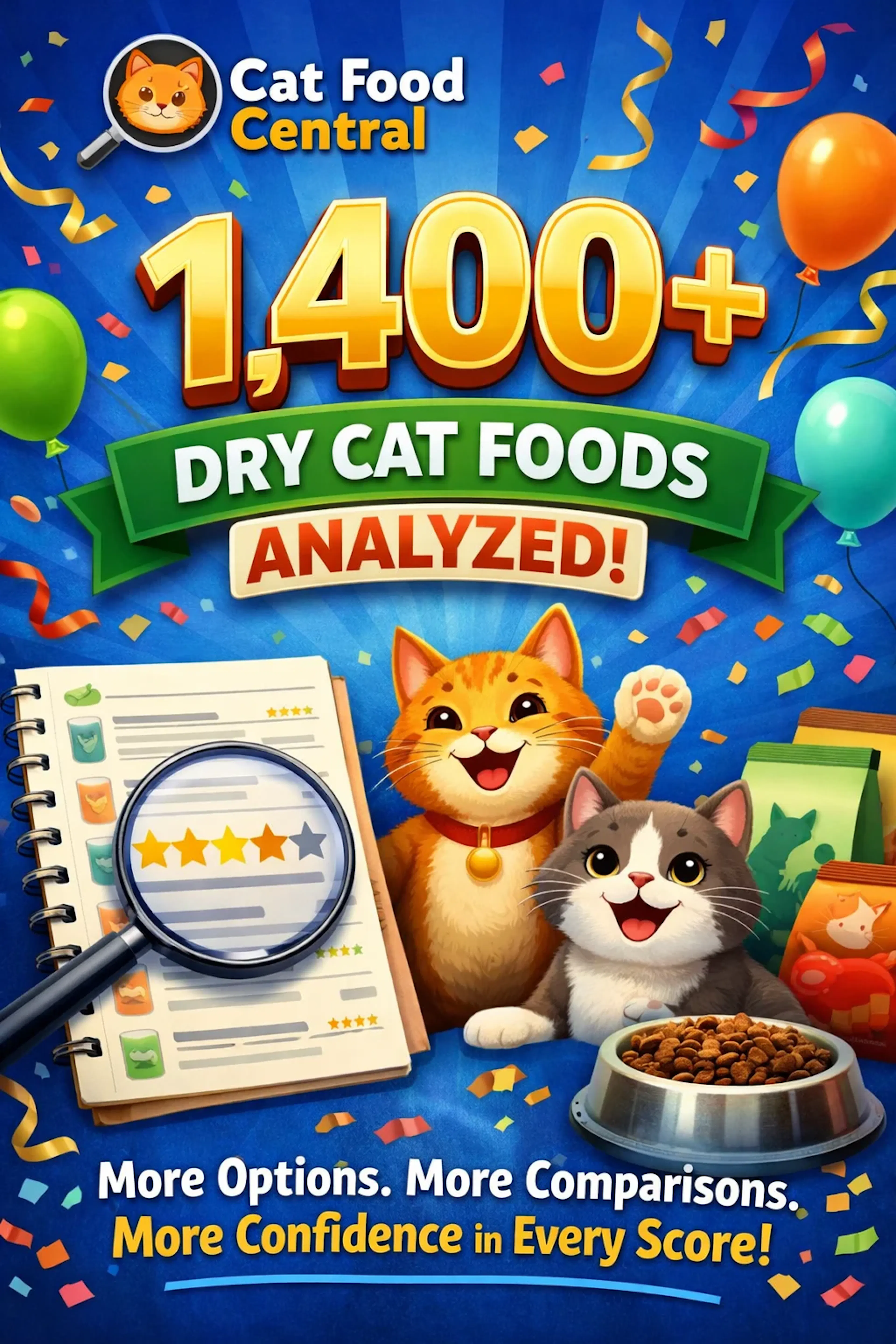 Cat Food Central just passed 1,400+ dry cat foods analyzed - more options, more comparisons, and more confidence in every score.